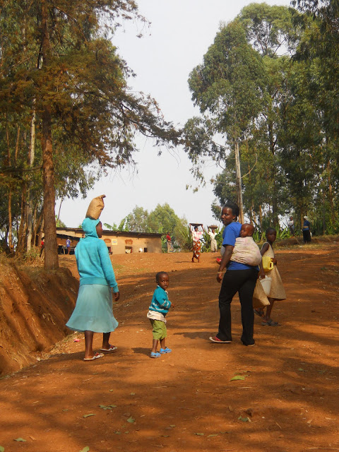 Well, let’s just say that I’m not used to being the centre of attention like this. I’ve seen a total of three other white people in this area of town, one of which is my roommate from Canada. People are staring, not only because I’m a white female, but also because I am dressed for ‘making sport’, the Rwandese phrase for exercise. I get several thumbs up from passers-by, or they mutter ‘courage’ as it isn’t very common for women to play sports here. When I walk by groups of children, they say ‘Good MORN-ing!’ even though it’s 5 PM. Understandable, as this is akin to when I get confused with Kinyarwanda and say mwaramutse (good evening) at 7 AM. I acknowledge their effort with a smile. People are everywhere, sitting outside of their shops or walking very, very slowly as Rwandans do. Ladies and men headed towards the isoko (market) have shallow, wide baskets full of tomatoes or avocadoes balanced on a piece of material folded up to protect the crown of their heads. Even when people have nothing in their hands they walk with boxes, bags, textbooks, even furniture on their heads. Definitely a talent I will strive to attain before I go home.